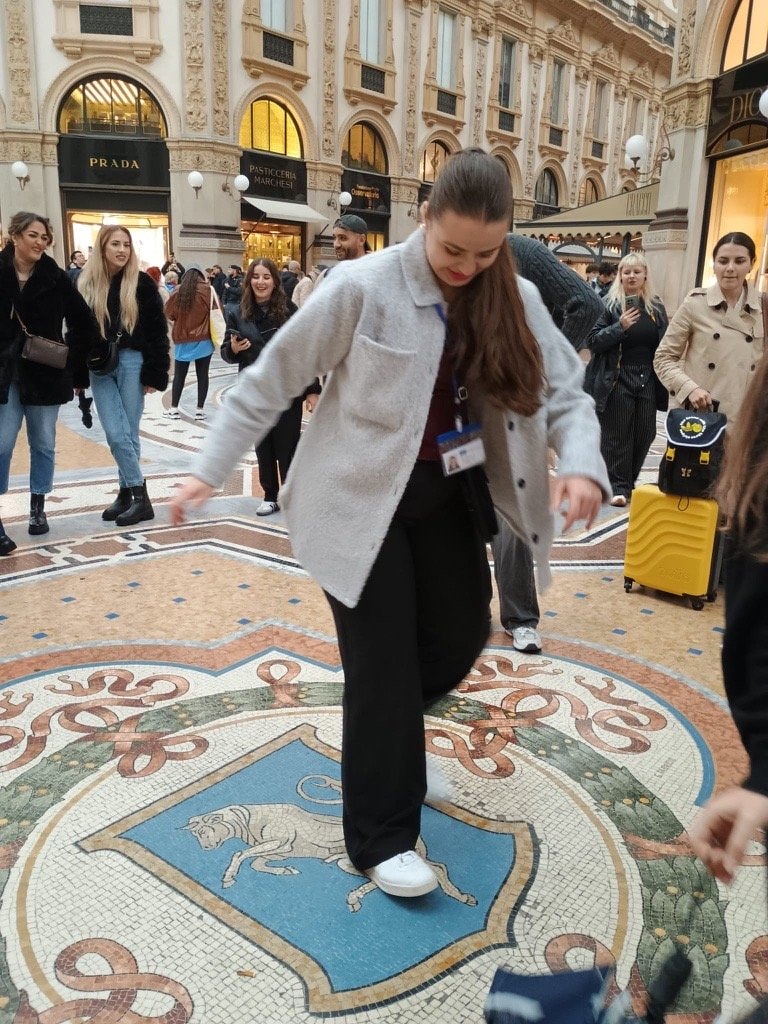 In the morning we had a meeting with Evolvo workers, that told us everything we needed to know and we also made presentations for tomorrow’s school visit. After lunch we headed to the city centre, where we had a guided tour of the centre. We saw the Duomo, the Sforzesco castle or a special Starbucks roastery.