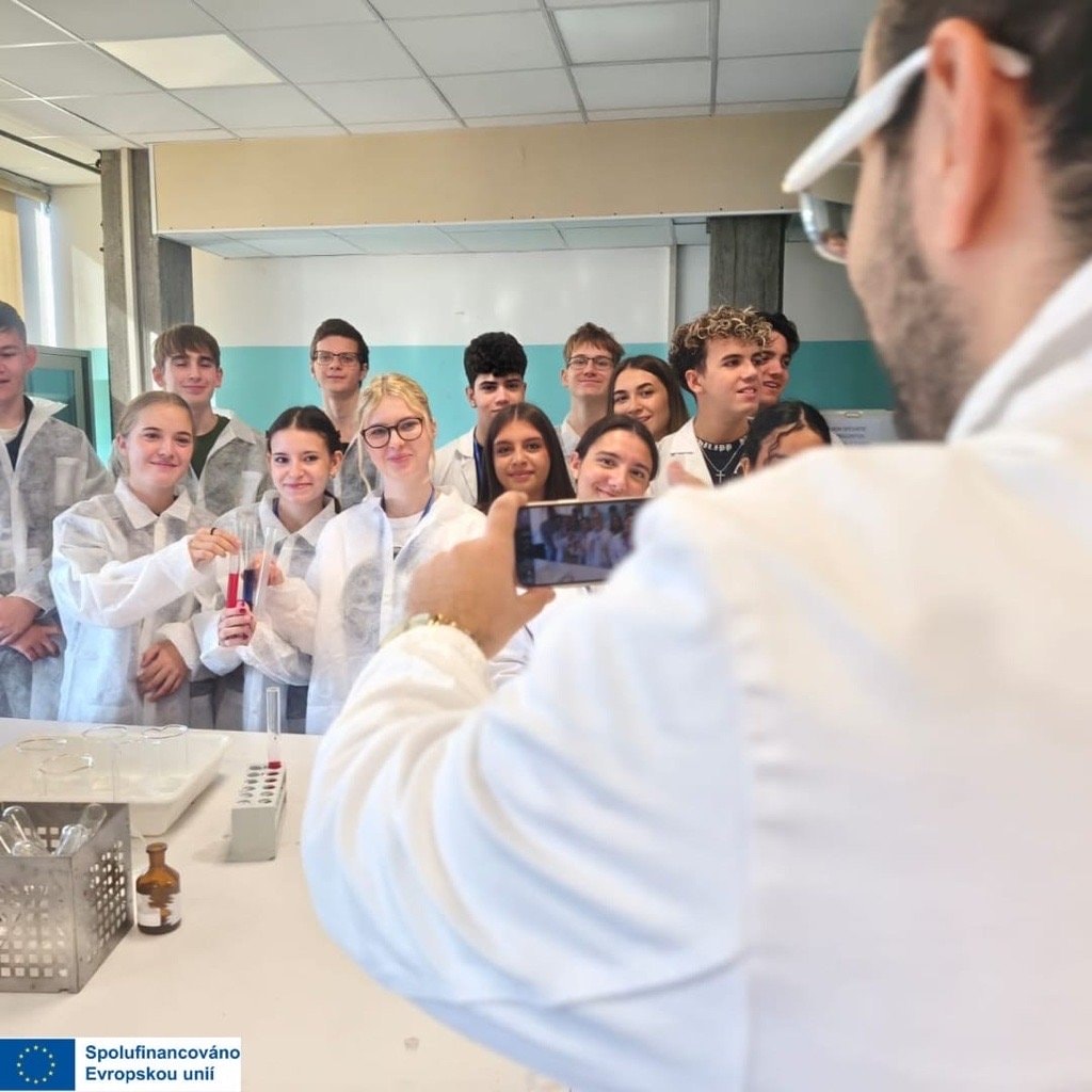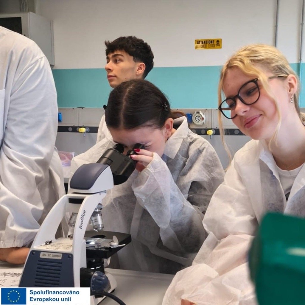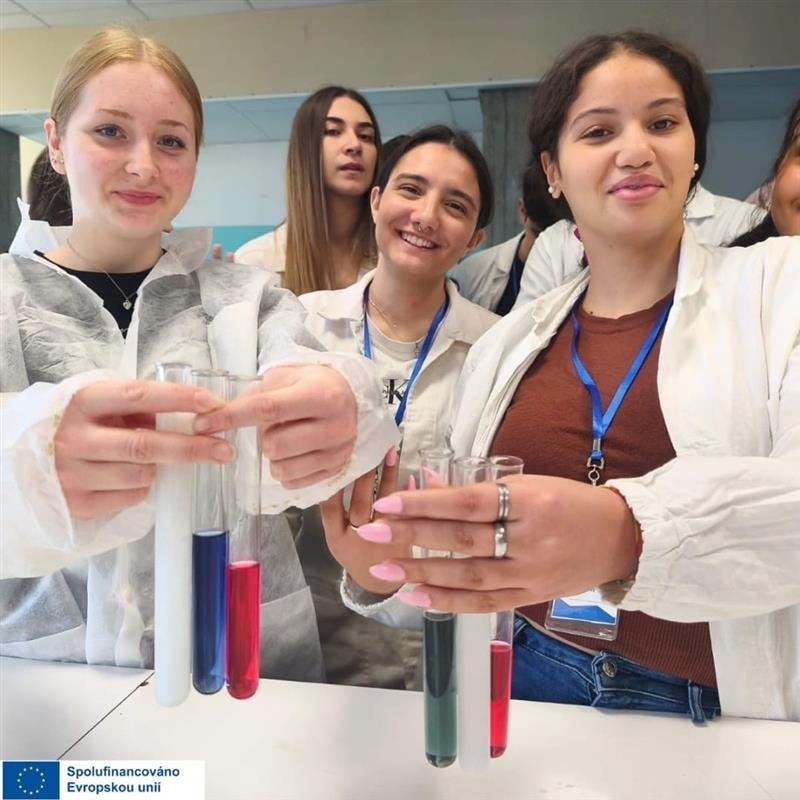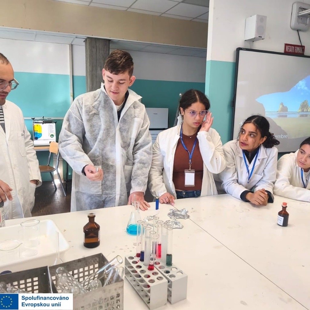 Dneska už jsme nejeli do neznáma. Mířili jsme za amici. Baví nás italská školní pravidla, temperament i přístup k práci – hooodně odlišný od našich zažitých zvyklostí. My k tomu přidali českou vynalézavost a v laboratoři jsme roztoky zbarvili do našich národních barev.