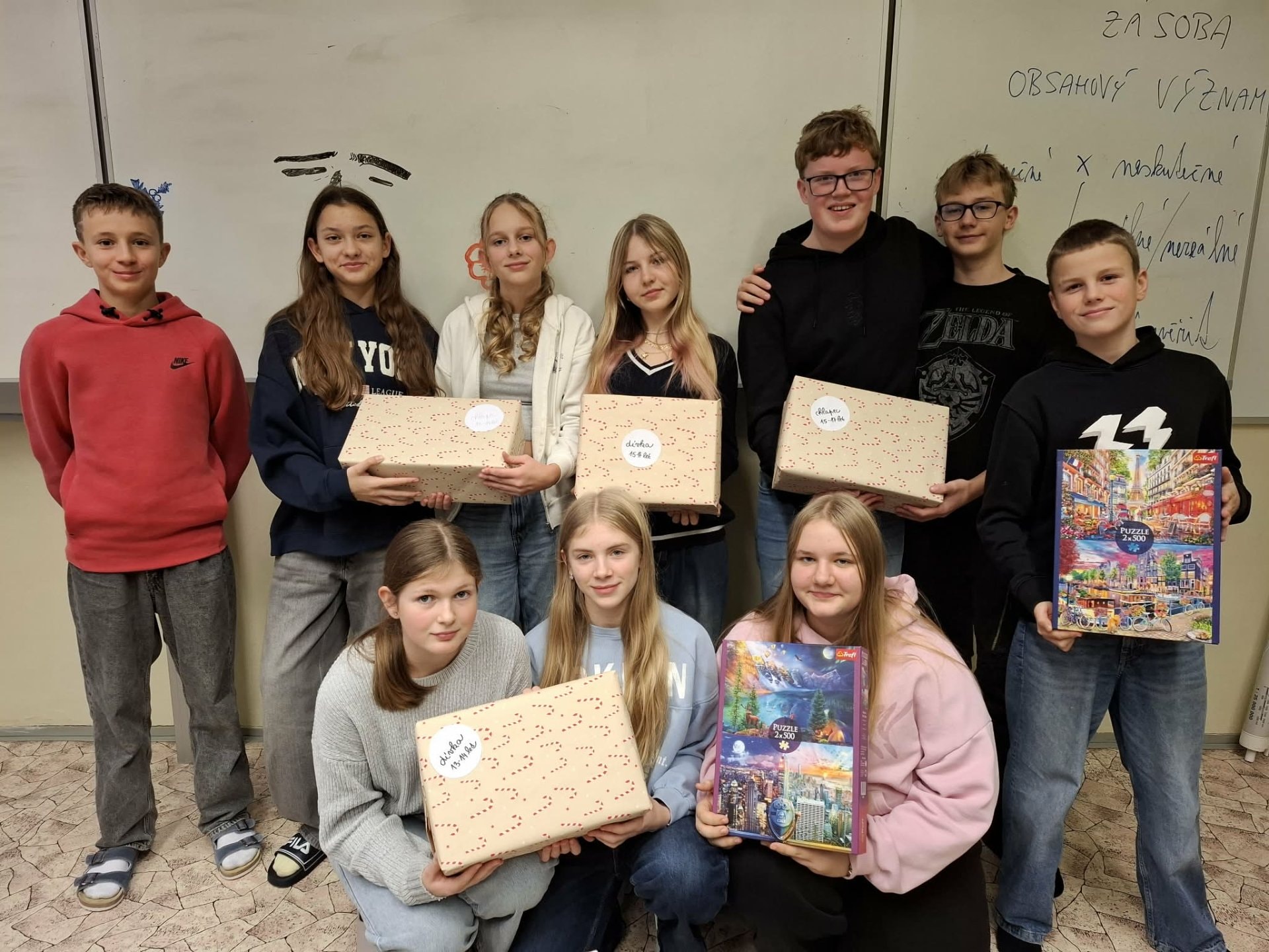 Naše třída PRIMA ukázala, že má velké srdce. Žáci se dobrovolně zapojili do sbírky Krabice od bot a připravili celkem čtyři krabice plné drobných dárků, přáníček a osobních vzkazů. Tyto balíčky vykouzlí radost dětem v nouzi, které by jinak pod stromečkem nic nenašly. A my věříme, že přinesou dětem nejen úsměv, ale i pocit, že na ně někdo myslí.