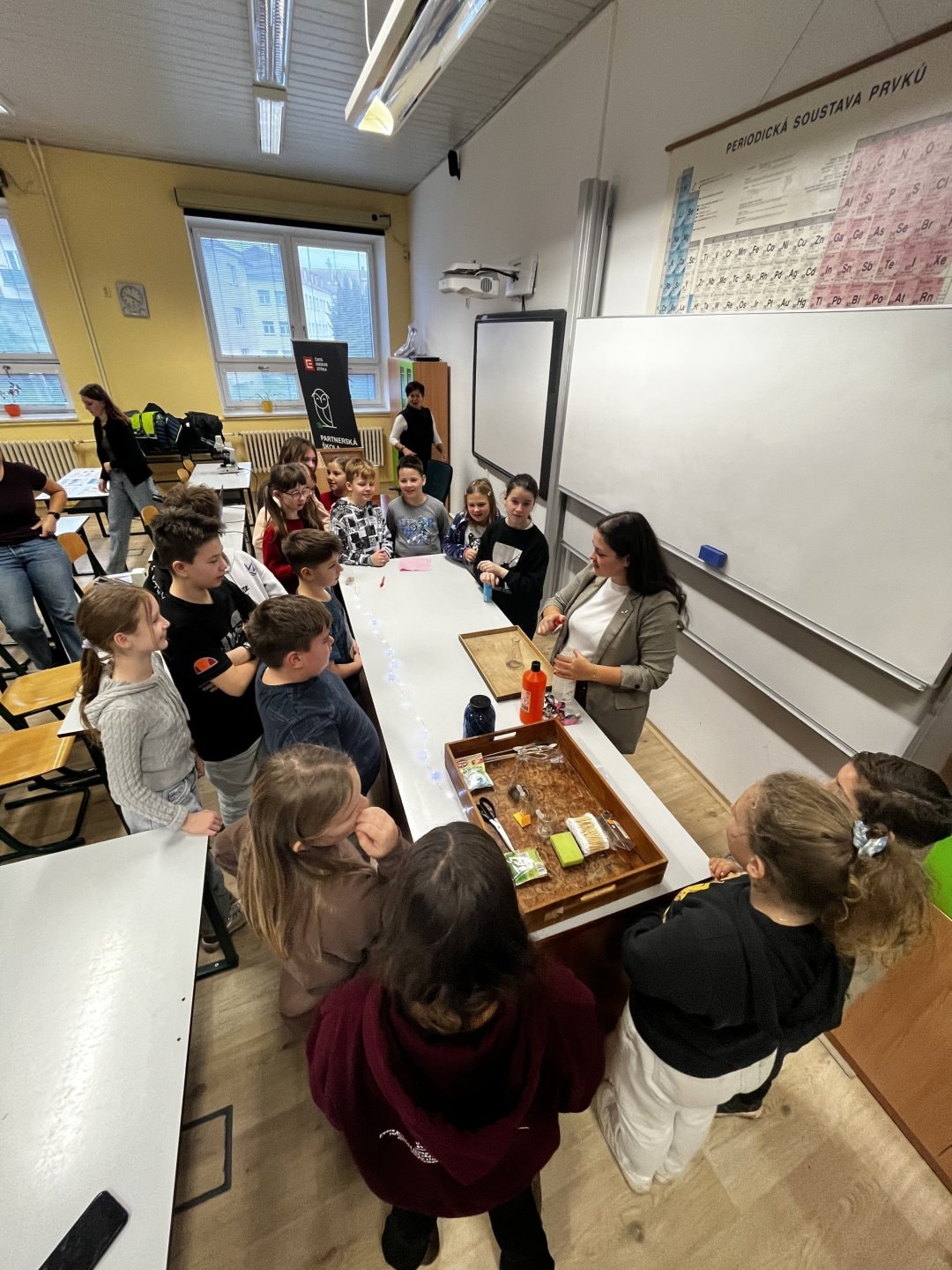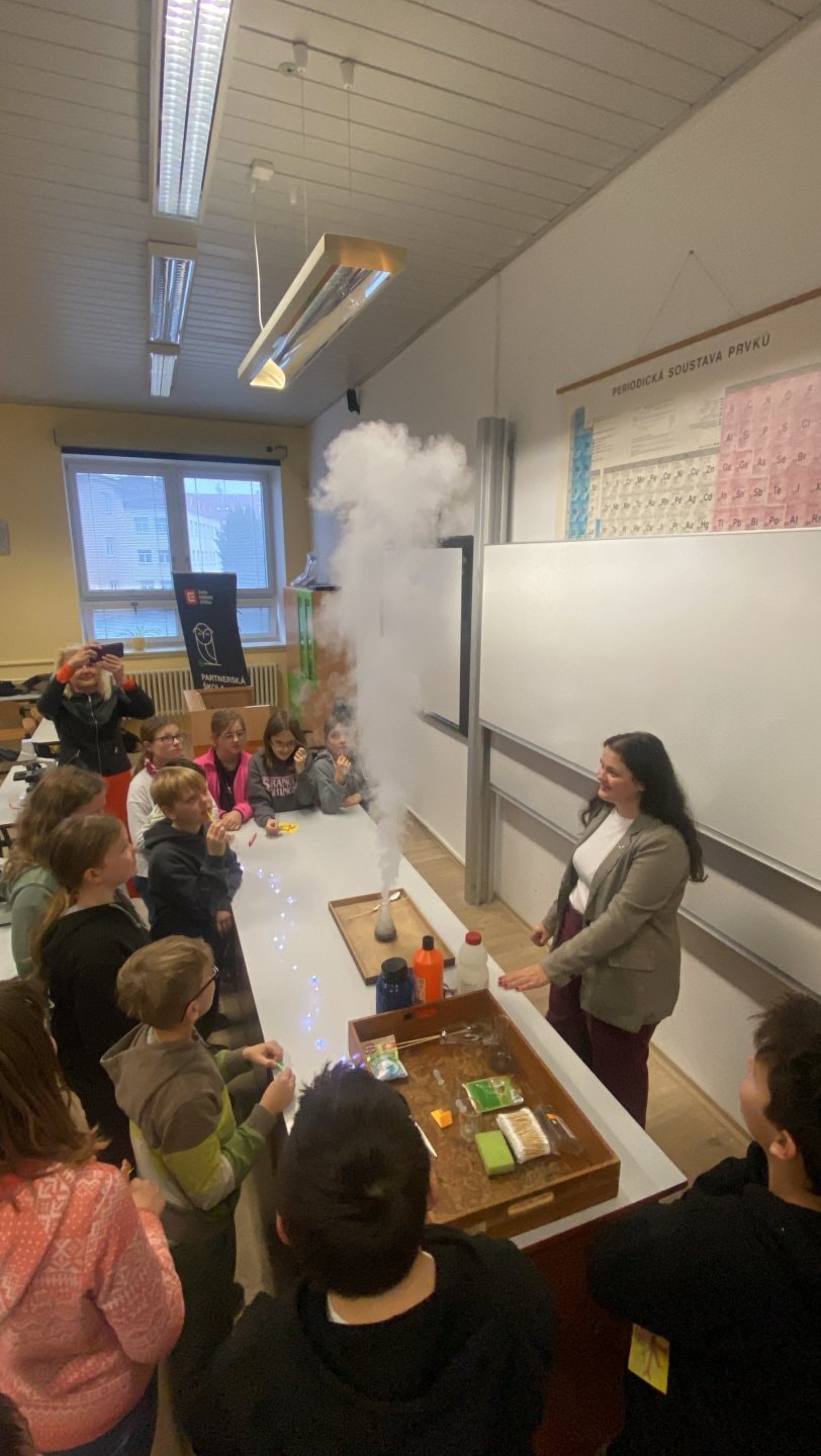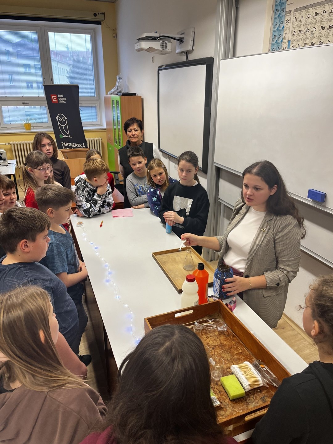Děti se učily poznávat ptáky, které mohou v zimě potkat u krmítek, a také zjistily, jaké vánoční stromy se nejčastěji objevují v českých domácnostech. Nechybělo ani hádání typických vánočních vůní, které provoní advent. Zázračný moment nastal ve chvíli, kdy paní Huberová v chemické laboratoři doslova vykouzlila „Gina z láhve“, takže si každý mohl něco přát.