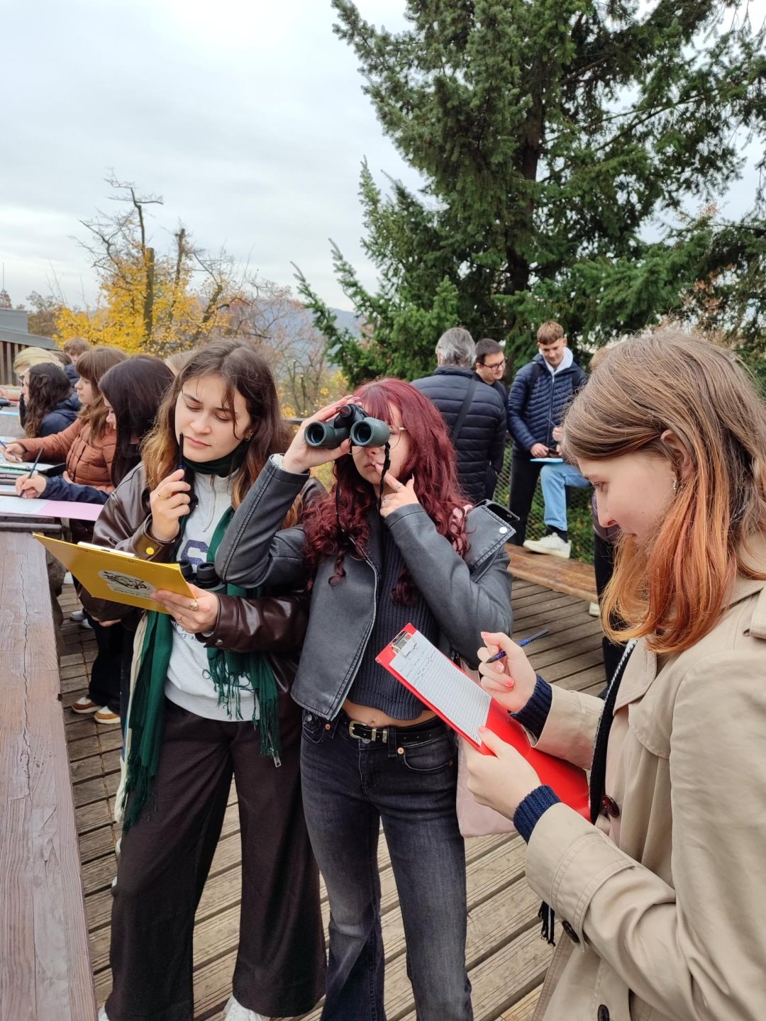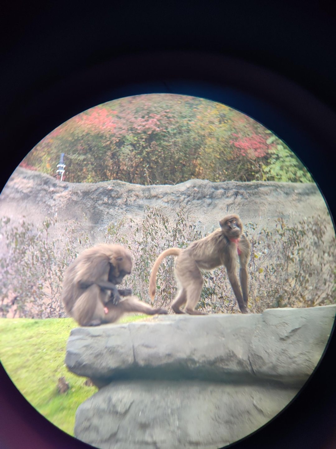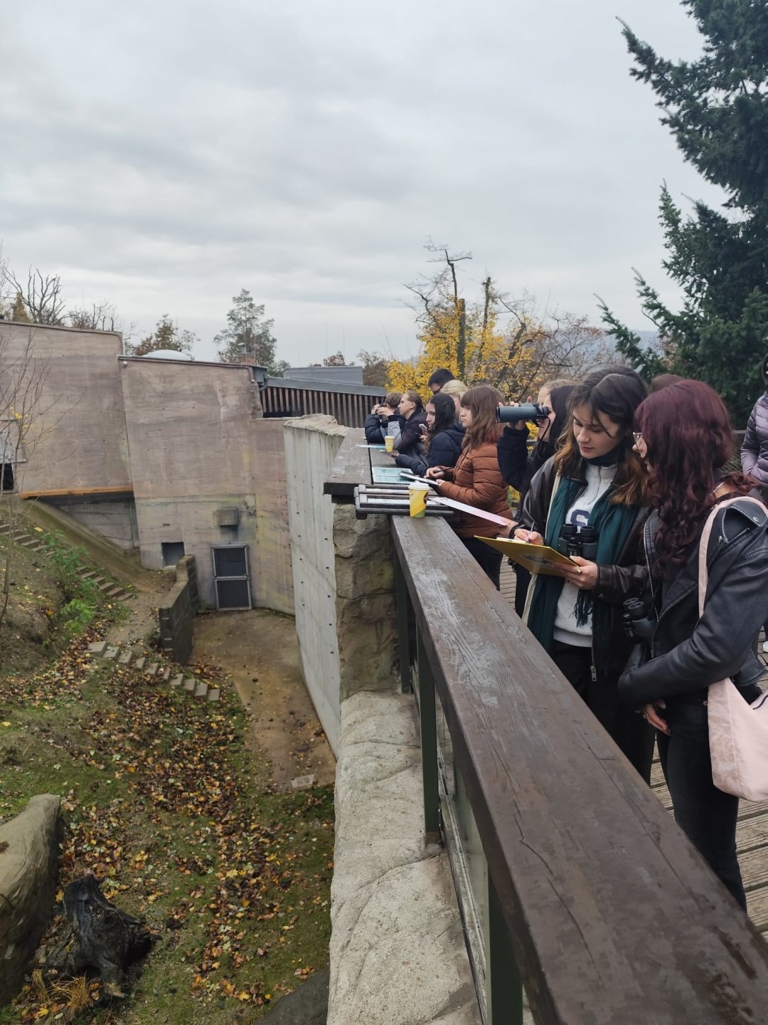 Teoretická část se následně překlenula do části praktické, kde studenti dostali k dispozici dalekohledy a vydali se pozorovat zvířata – konkrétně opice dželady a malé savce damany. Po vyplnění pracovních listů čekala na nadšené zoology prohlídka celé brněnské zahrady.