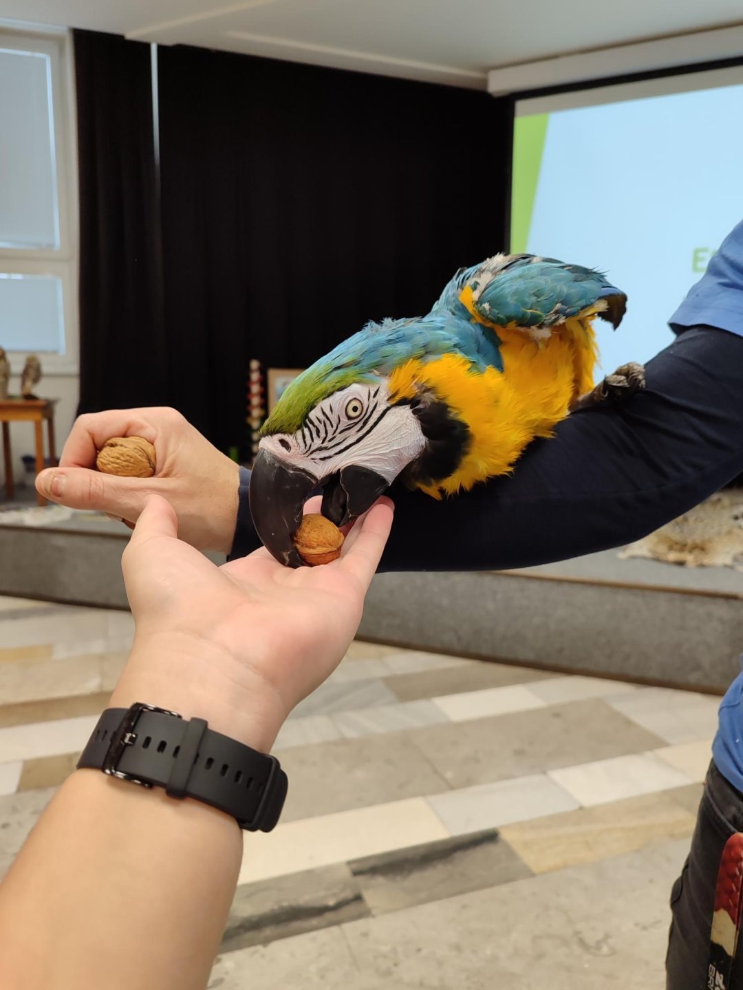 Dnešní den se odehrál v Zoo Brno, kde si naši studenti vyslechli přednášku o etologii zvířat. Před výkladem byl hlavní hvězdou papoušek Eda, kterého si někteří zkusili i nakrmit.