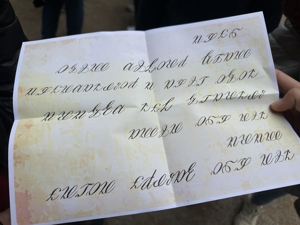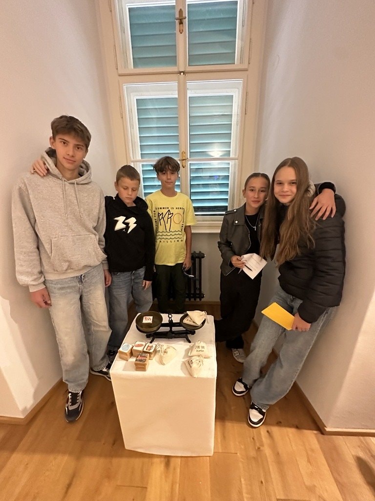 Součástí programu byla také originální aktivita – hádanka zapsaná starým písmem Kurrentschrift. Její vyluštění se pro žáky stalo malou výzvou, která prověřila jejich bystrost i trpělivost. Odměna, kterou si z návštěvy odnesli, byla nejen symbolická, ale především v podobě nových poznatků a nevšedního zážitku.